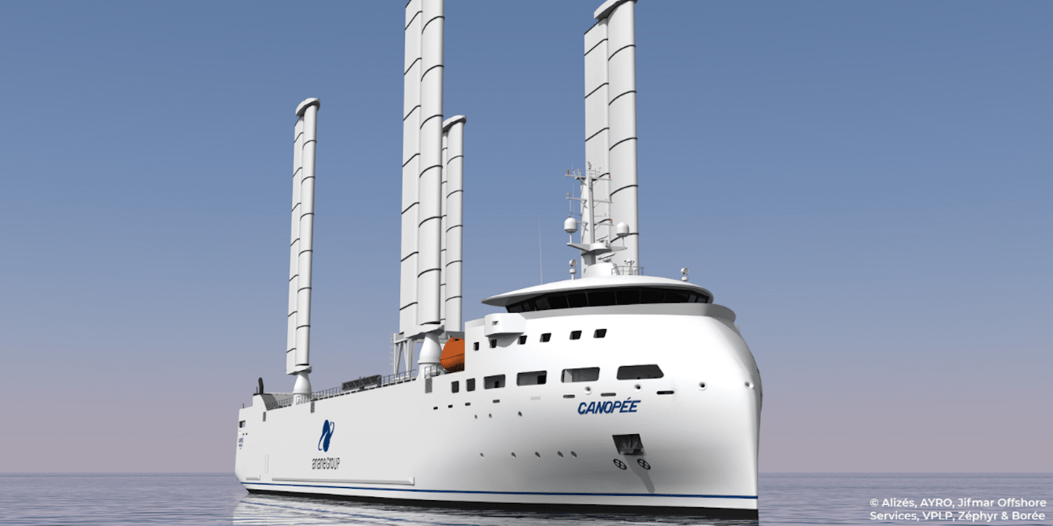 Le projet phare qui va bientôt voir le jour et dont nous sommes très fiers, c’est Canopée, le premier gros navire commercial à utiliser le vent. Ce navire roulier de 120 mètres sera mis à l’eau en fin d’année pour transporter les éléments de la fusée Ariane 6. C’est vraiment l’aboutissement d’une démarche engagée par VPLP sur le long terme et qui a lancé la création d’Ayro, société qui vole aujourd’hui de ses propres ailes. Elle construit et commercialise les Oceanwings®, ces ailes de propulsion, ce moteur aérien sur lequel nous travaillons depuis 2010.