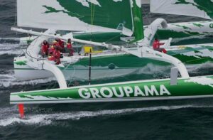 Sistership du Brocéliande d’Alain Gautier – lancé un an plus tôt – muni des flotteurs du Primagaz de Laurent Bourgnon, Groupama 1 est doté de petits foils, d’un mât basculant et d’étraves plus fines que ses aînés.