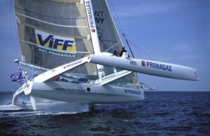 Record de la Méditerranée, record de l’Atlantique, grandes courses, le trimaran dispose d’un tableau de chasse impressionnant. Et s’il est surtout connu sous le nom de Primagaz, il porta dans une seconde vie les noms (entre autres) de Foncia, Bayer, Rexona et Région Guadeloupe.