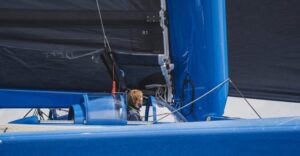 Cela n’a pas empêché l’équipe de conception d’être radicale dans certaines options, en particulier pour toute l’aérodynamique de la plateforme : la traditionnelle casquette a ainsi disparu et la cellule de vie ainsi que le cockpit ont été intégrés dans la coque centrale. La bôme est rabaissée au maximum et l’ensemble n’offre que peu de prise au vent.