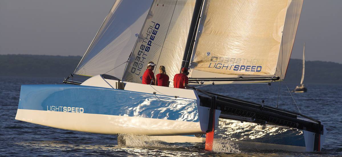 The LIGHTSPEED 32 features all the latest sailing, engineering and construction innovations. She was developed by a team including former US Olympic 470 skipper Kristina Stookey, Alinghi’s chief engineer Dirk Kramers and the boatbuilders of the America’s Cup Class, as well as Stewart Wiley and Ted Brown of Al Fresco Composites.