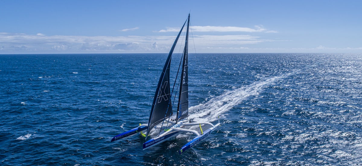 For the design of Maxi Banque Populaire XI, launched in April 2021, VPLP drew inspiration from Banque Populaire IX and in particular her platform, which was a veritable reference for the project. The general balance of the boat was made more flight-friendly, with the distance between the centre of gravity and the hydrodynamic surfaces (i.e. the foils) reduced so that the boat would be much more stable above the water. For the same purpose, weight and the sail plan were moved forward as far as possible so the rudder winglets could function as preventers rather than lifting surfaces.
