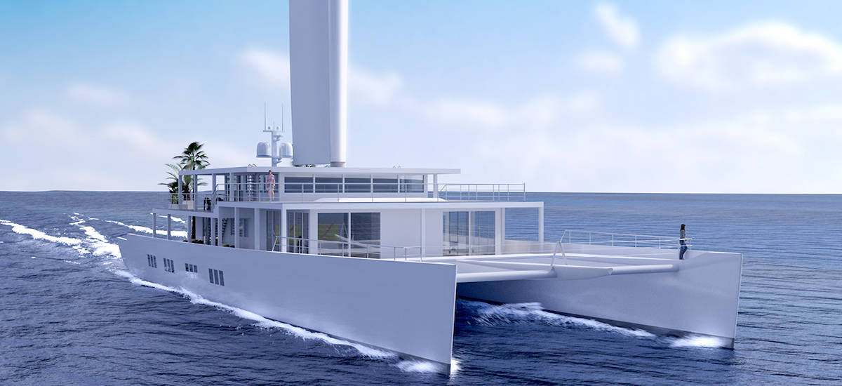 Ce dernier a souhaité créer un grand catamaran qui soit une sorte de Villa Médicis flottante, accueillant des artistes mais également des chercheurs en résidence temporaire. Ce catamaran, qui s’inspire des pirogues doubles polynésiennes, devait initialement mesurer 164 pieds, il a été réduit à 85 (27 mètres).