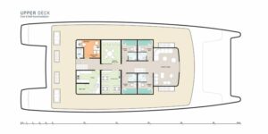 Les zones d’habitation se situent dans les flotteurs, le pont supérieur abritant les salles communes (cuisine, salle à manger, salle de réunion…), l’objectif étant de concevoir un navire très autonome en consommation d’énergie pour permettre de longues sorties.