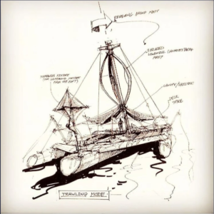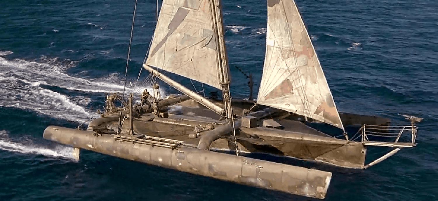 Il s’agissait en fait d’en créer deux versions : une première, qui naviguait réellement pour les prises de vue sur l’eau et pouvait atteindre des vitesses de l’ordre d’une quinzaine de nœuds ; la seconde, qui servait à tourner des scènes à bord, notamment celles nécessitant des effets spéciaux, et qui était dotée de nombreux gadgets, dont un mât télescopique pour, justement, permettre des prises de vue à 360 degrés.