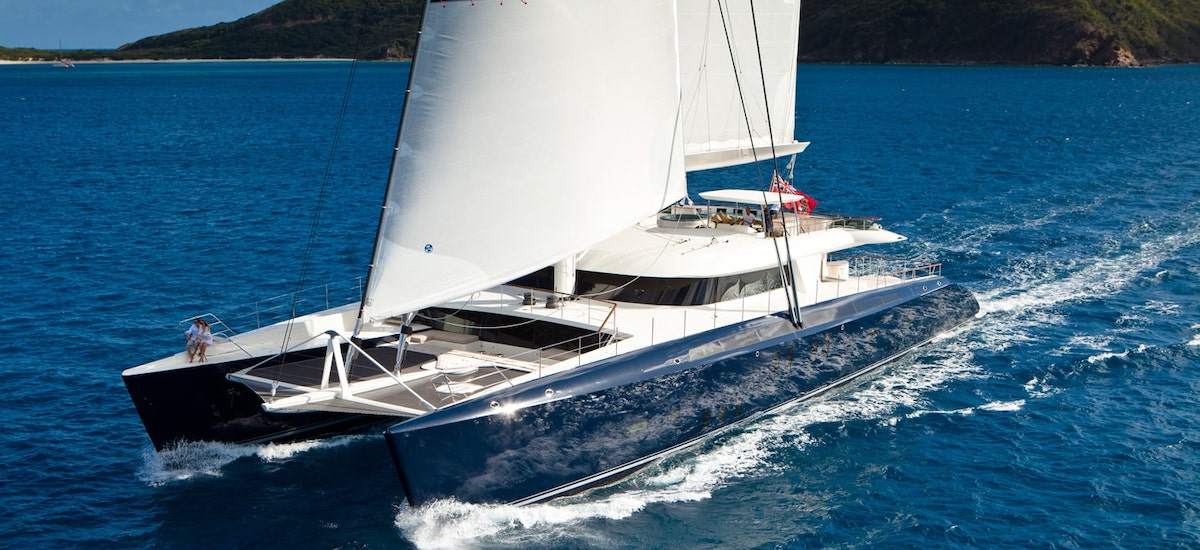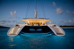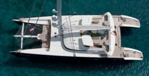 Attention bateau d’exception ! Lancé en 2011, ce grand et luxueux catamaran de croisière de 145 pieds (44,2 mètres), construit en aluminium, avec espars en carbone et gréement en sloop (1 123 m2 de voilure au portant, 856 au près), s’avère le nec plus ultra pour des croisières au long cours dans le Pacifique.