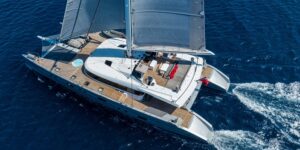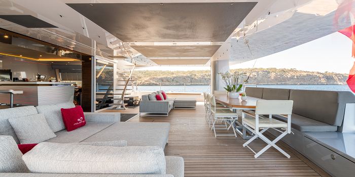 Le roof a ainsi été reculé vers l’arrière pour optimiser l’espace du grand carré, ainsi que celui de la plage avant. A l’intérieur, les aménagements sont à l’avenant, offrant aux 8 passagers (pour 7 membres d’équipage) un confort maximal. Il navigue sur la côte ouest des Etats-Unis.