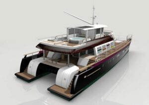 Un avant-projet réalisé en collaboration avec l’ancien propriétaire de Douce France qui souhaitait développer une gamme de catamarans à moteur capables de tenir une vitesse de croisière de 12-15 nœuds. Conçu pour le confort et l’habitabilité avec de larges espaces de vie répartis sur trois niveaux, Noah se décline en trois modèles, dont le 76 doté de 260 m2 de surface habitable, avec un intérieur bois particulièrement chaleureux et aéré et des aménagements confiés à Kenzo et Anne-Monique Bonadei.