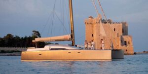 Les lignes particulièrement élégantes, l’ergonomie du plan de pont optimisée pour un équipage réduit et les larges espaces de vie, sont les autres points forts de ce bateau à l’origine conçu pour être utilisé pour des navigations à la journée, et finalement très à l’aise au plus long cours.
