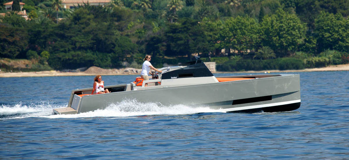 Monocoque à moteur de 23 pieds, le Smartboat, dont le cahier des charges était d’être à la fois abordable et moderne, se distingue par ses lignes épurées et profilées, fruit d’études structurelles et MFN (mécanique des fluides numériques) particulièrement poussées. L’objectif était de générer peu de vagues, d’améliorer ainsi le passage du bateau dans la mer, et donc de réduire la puissance du moteur et la consommation de carburant.