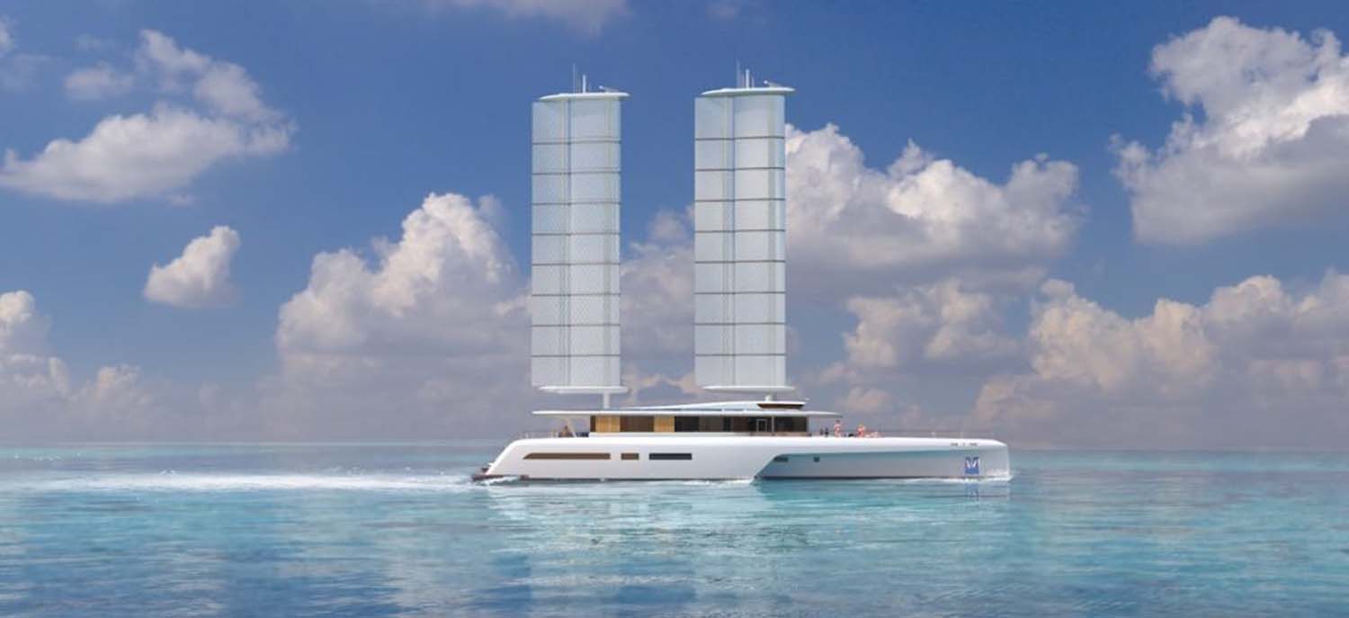 Ce trimaran (ou monocoque stabilisé), qui ressemble un peu au Komorebi 138, est l’aboutissement d’une étude commandée par un propriétaire américain qui souhaitait un bateau de croisière entièrement solaire pour être totalement autonome d’un point de vue énergétique.