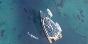 L’agence lui a présenté ce concept avec une belle habitabilité offerte par le pont principal ainsi qu’une grande surface pour accueillir les nombreux panneaux solaires. Le bateau est également équipé de deux Oceanwings pour compléter la propulsion et lui donner encore plus d’autonomie et de performance.