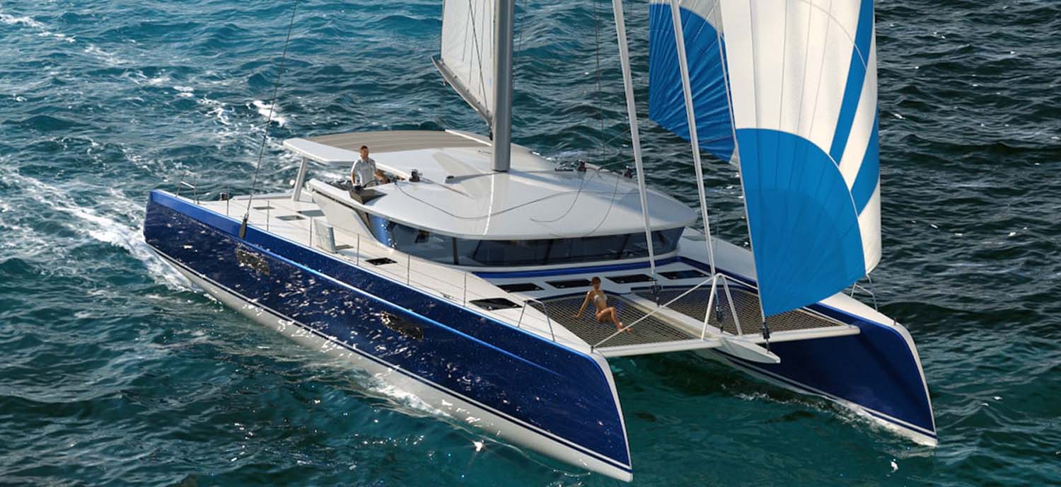 Développé en collaboration avec un agent nautique basé à Dubaï, le Tan 66, dont aucun modèle n’a été construit à ce jour, a été conçu pour naviguer à très haute vitesse avec une grande facilité. Sur ce catamaran innovant entièrement en carbone pour plus de vitesse, de rigidité et de puissance, tout est pensé – postes de barres, mât central, voiles d’avant à poste – pour permettre au bateau d’atteindre des vitesses élevées sans effort et en toute sécurité.